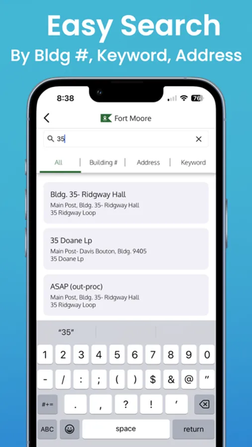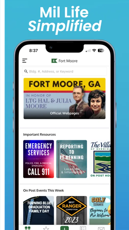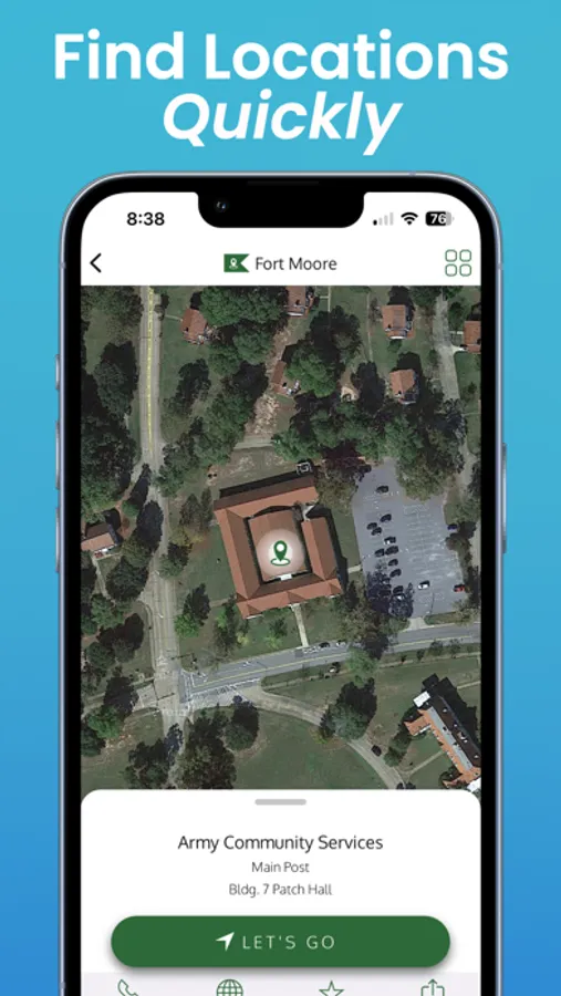 Find where you need go, get directions, contact information, informative websites, social media links, and military community relevant content with GuideOn. Search by Bldg. # or keyword for locations, resources, units, information, graduations and more on and around a military installations.