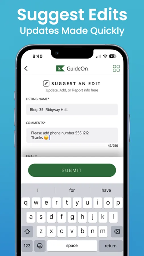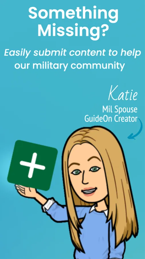 GuideOn is a "by our community, for our community" app created and managed by a military spouse and greatly enhanced by thousands of user contributions. All users can easily contribute to the growing content by submitting adds and edits for review through the "+" icon on the dashboard.