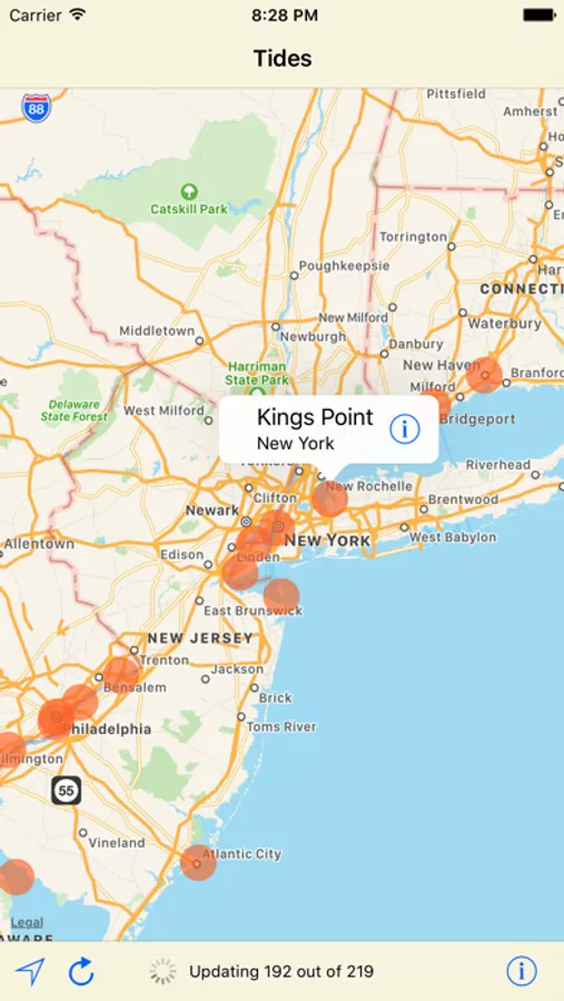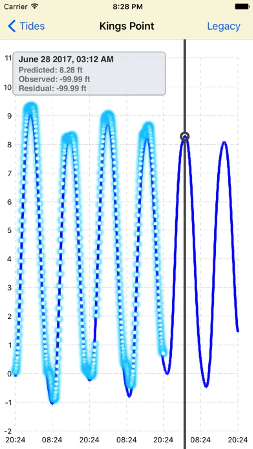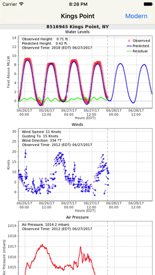 Will show predicted and measured ocean tide levels in your area using data from The Center for Operational Oceanographic Products and Services.