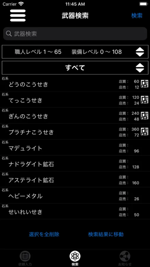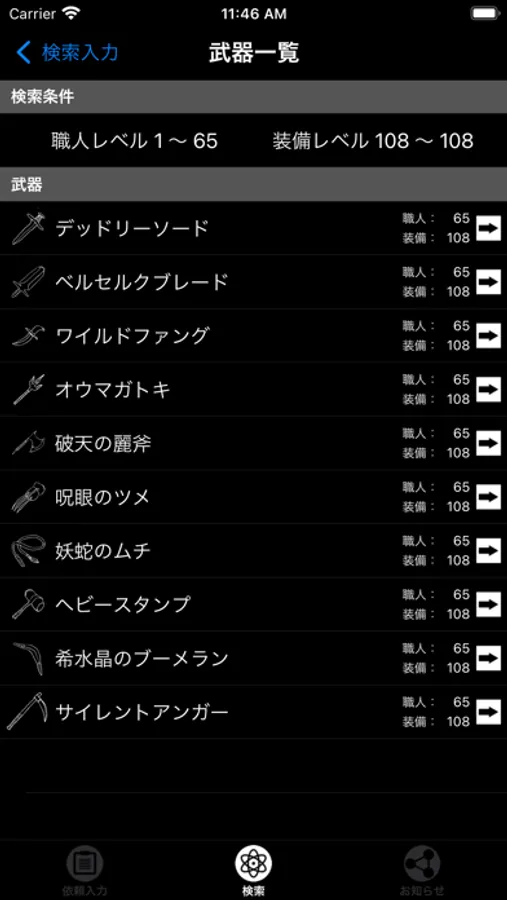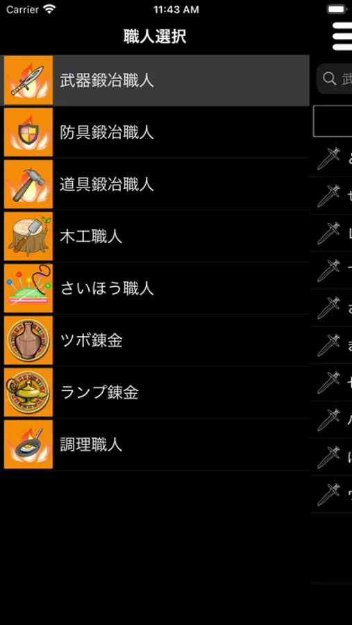 武器・防具・道具・木工・さいほう・調理・ランプ錬金・ツボ錬金