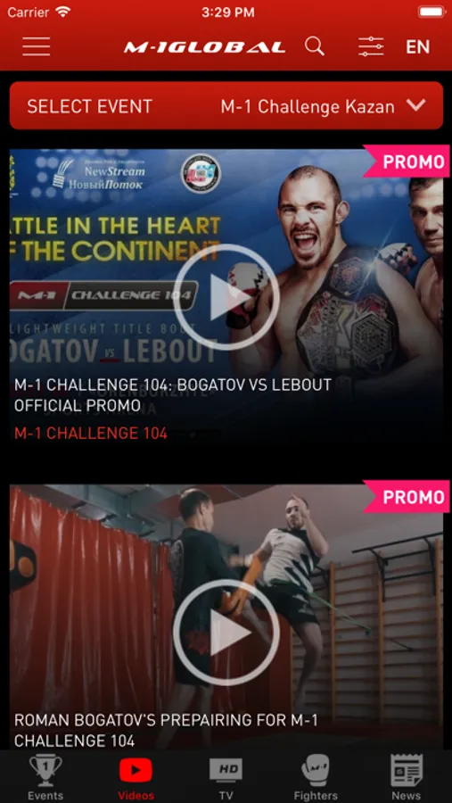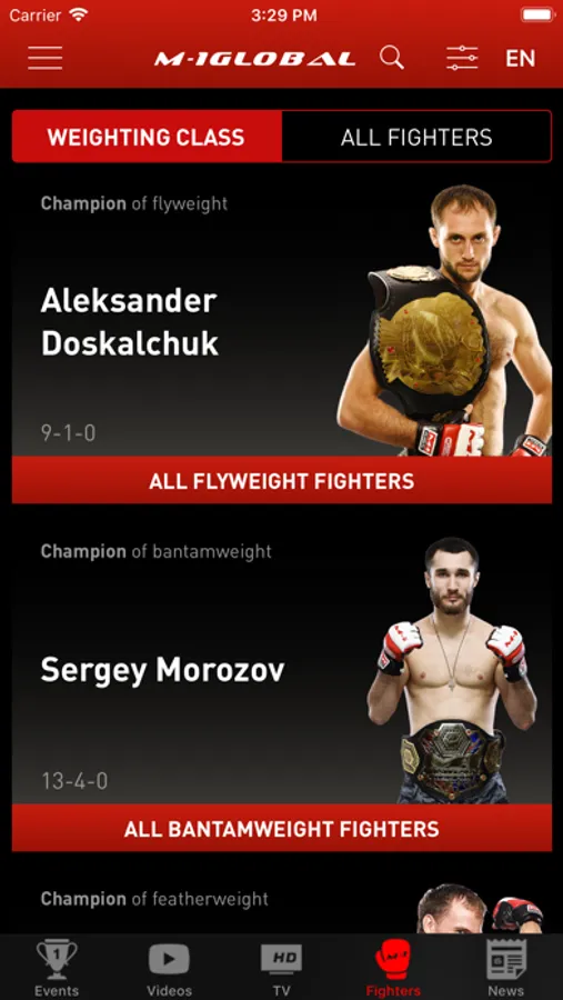 Video - watch all videos of favorite fighters.