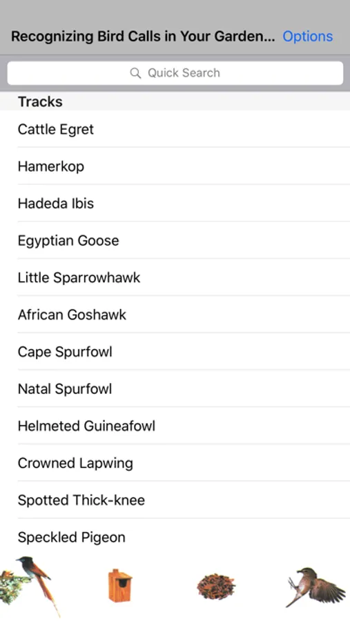 Features 98 bird calls taken from the Len Gillard Collection of Southern African Bird Calls. Afrikaans names included. Compiled by Alan Reid.
