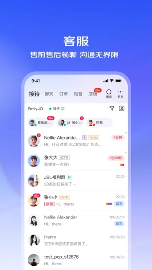 消息中心:商品信息、订单信息、官方公告等,即时推送到手机。与买家沟通更便捷,支持消息多端统一,更快响应。
