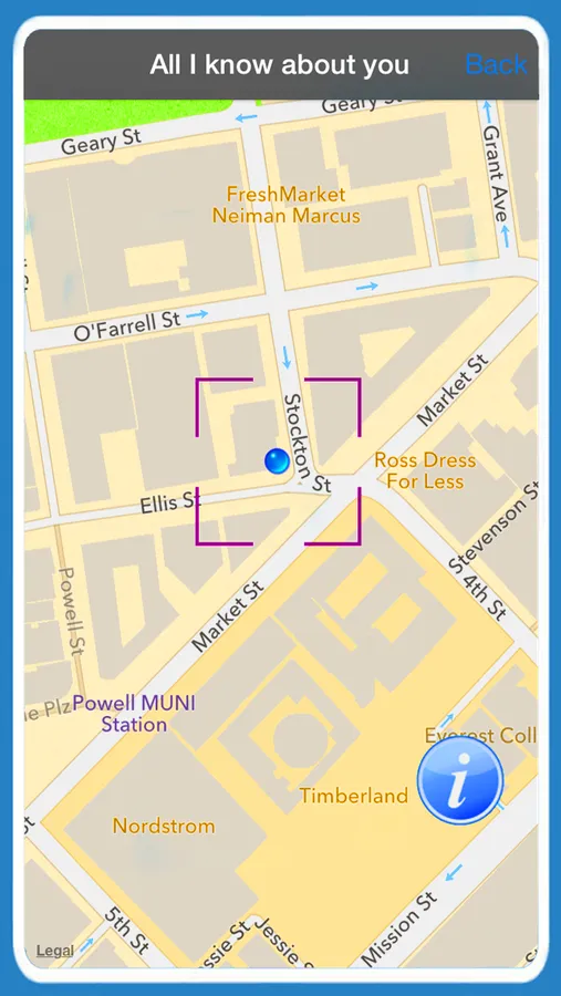 ● Locate another iPod, iPhone user and view his/her movements during the previous 4 hours.