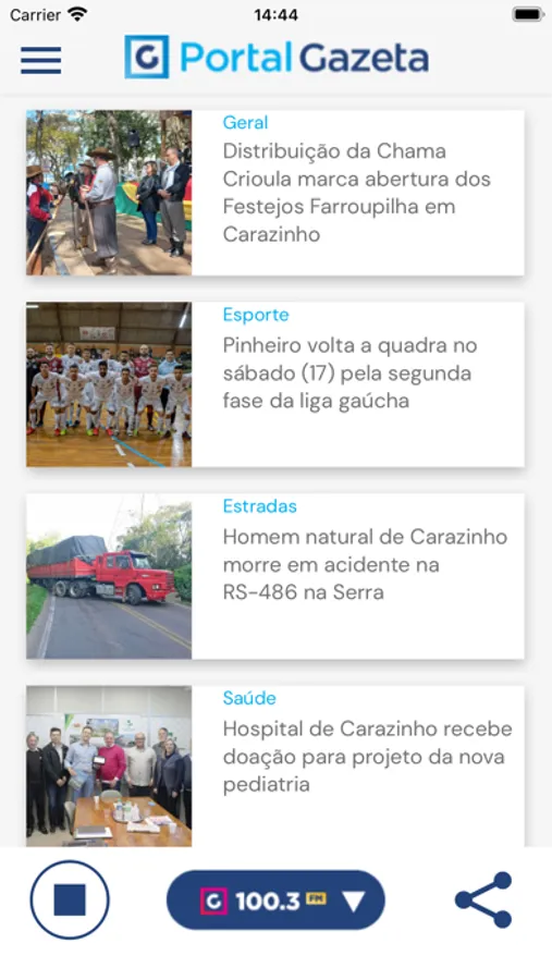 Ouça as rádios Gazeta 670 AM ou 100.3 FM ao vivo enquanto navega pelo aplicativo.