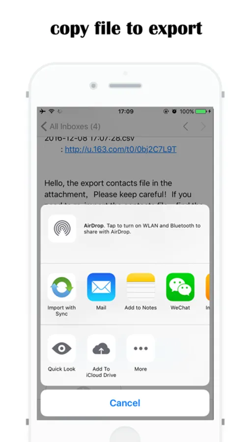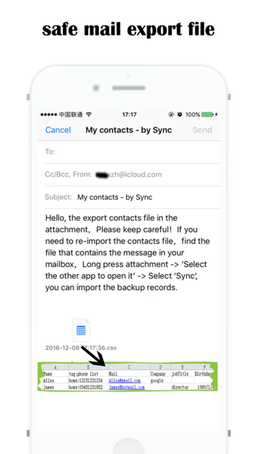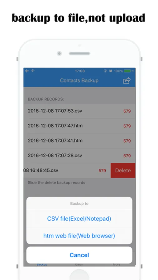 Contacts in the address book, you can directly back up and export files without CSV or htm. CSV files can be directly open to browse HTM, Excel files can be directly IE, Safari, chrome and other browser browser. CSV documents and HTM files can be sent directly through the mail back.