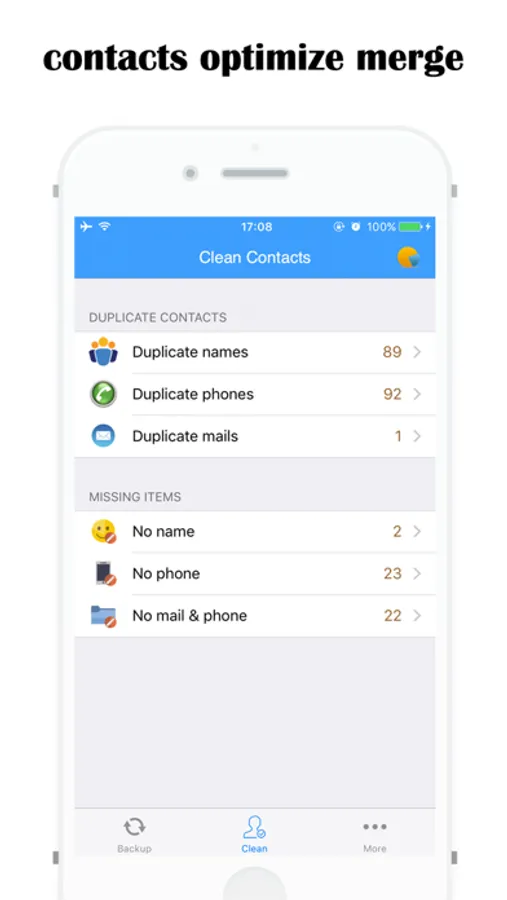 For contact name, telephone, eMail duplicate contacts, you can easily merge into a new contact, and can choose whether to delete the old contact.