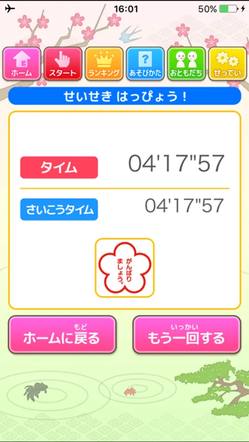 できるだけ短い時間でクリアできるようがんばってみてください。