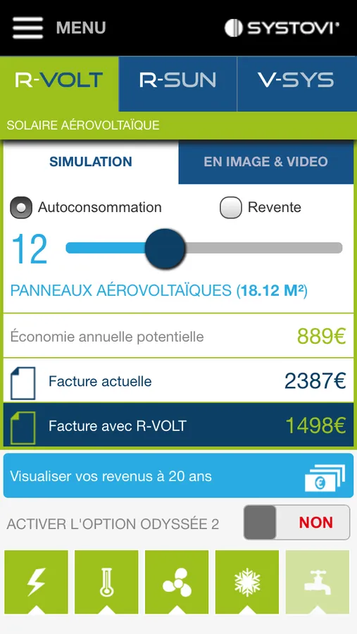Simulate SYSTOVI innovative solar solutions in your home! Enter your home settings, configure your system and see your energy savings! Watch also our products presentation videos.
