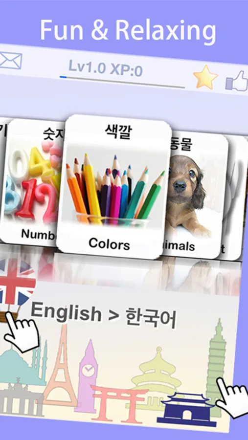Look at the beautiful cards, listen to the native speaker’s voice and try to speak! Learn vocabulary effectively in an enjoyable way!