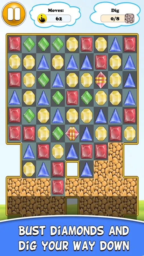 • Dig levels - Dig your way down to the goal line and reach the target score to finish this level