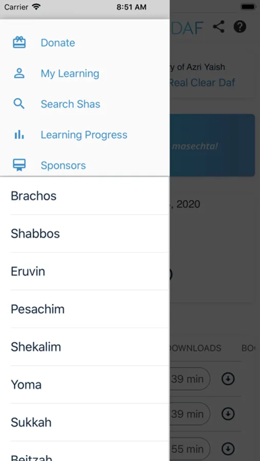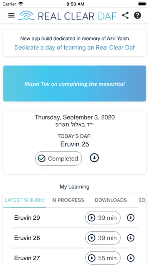* Easily play/download Real Clear Daf's Daf Yomi audio shiurim