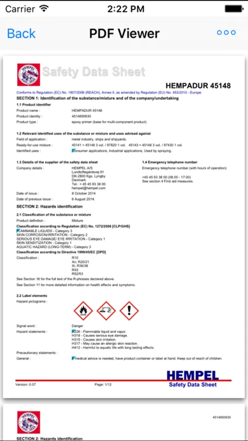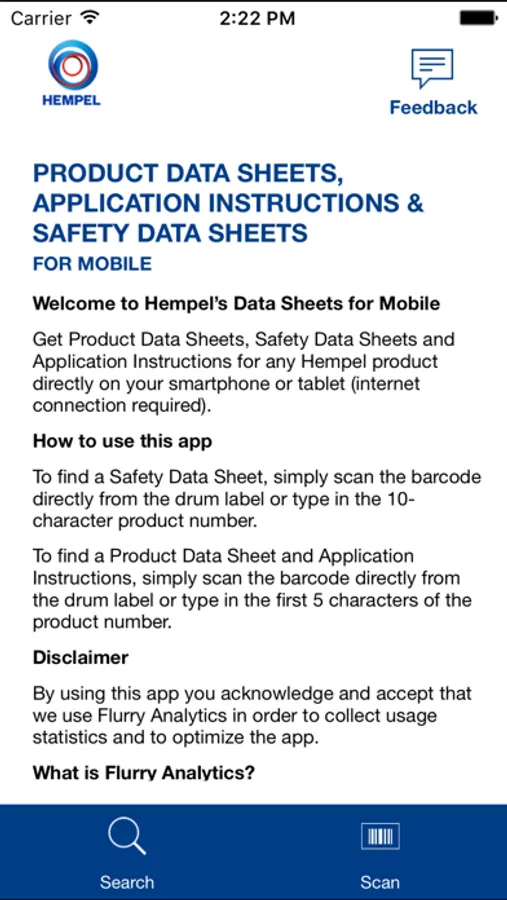 Hempel Datasheets allows to retrieve Safety Data Sheets, Product Data Sheets as well as Application Instructions for Hempel products directly on your mobile phone (internet connection is required). To search for respective document you can either type the product number (5 or 10 characters) or scan the product barcode directly from the can label.