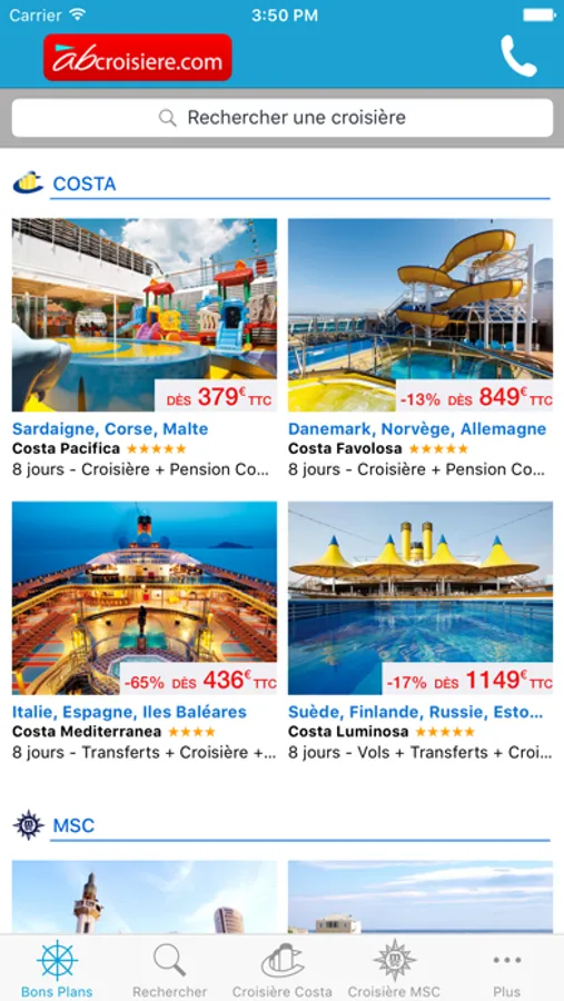 L’appli ABCroisiere vous permet de profiter de nos offres avantageuses de dernière minute. Réserver votre croisière sera plus rapide que boucler votre valise.