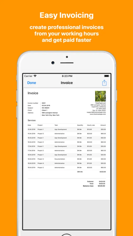 "Professional time tracking and invoicing with TimeTrack is a breeze"