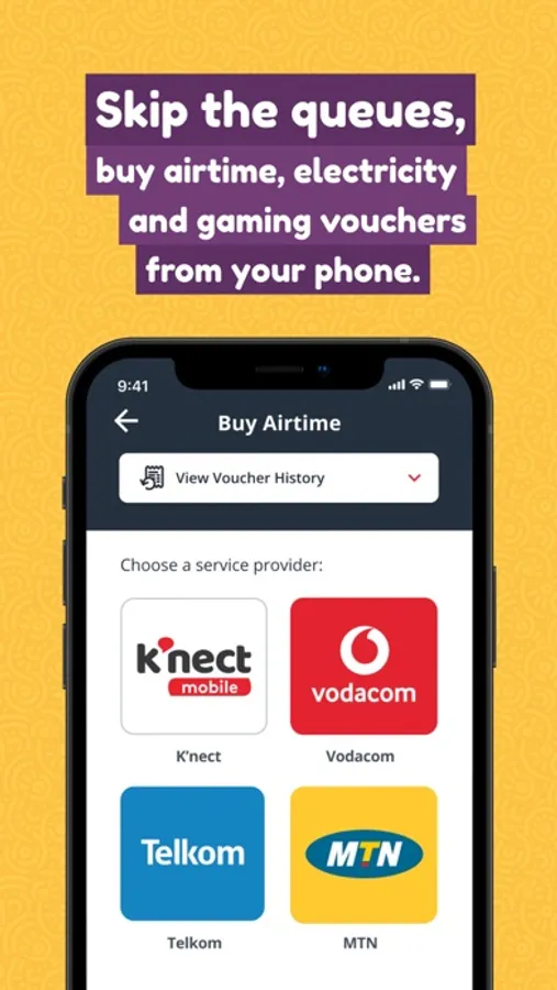 * Buy airtime, data, electricity, and gaming vouchers.