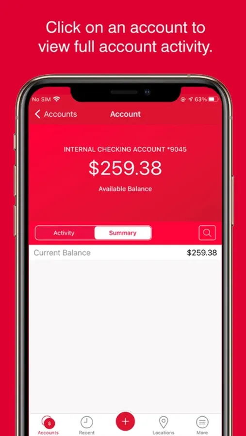 - Check your latest account balance and search recent transactions by date, amount, or check number.