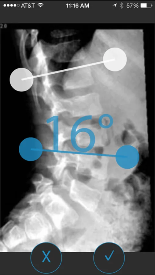 Once a surgeon has a target angle range in mind for a case, an HCP in the non-sterile field can use this tool to help measure the angle from an intra-operative fluoroscopy image, as they could with a manual protractor. This iPhone application can: