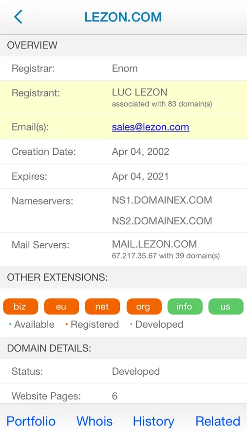 - Access live and historical domain ownership records for hundreds of millions of domain names