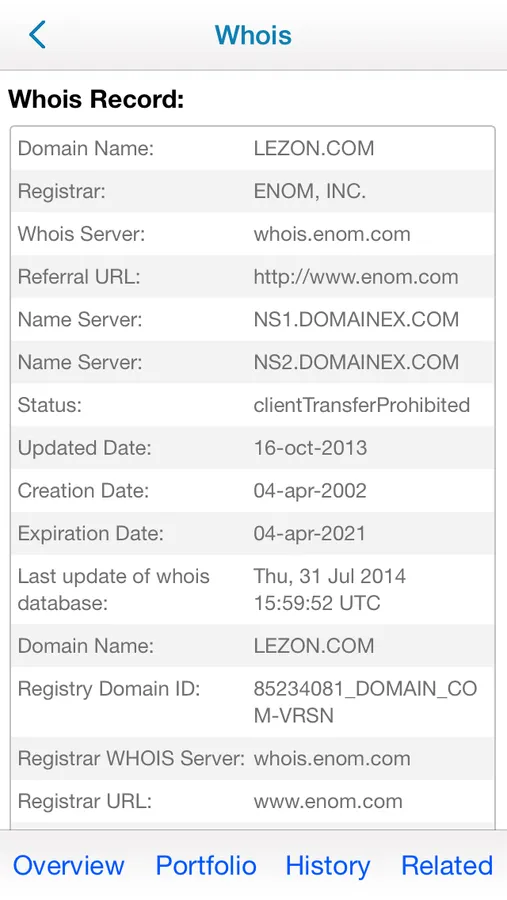 The domainIQ mobile app for the iPhone lets you find out everything about a domain name, its owner, the server it's hosted on, its ownership history, similar domains and much more.