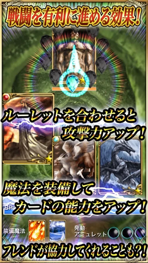 タイミングよく画面をタッチしてターゲットに光るクリスタルを止めると強力な攻撃が発動します。
