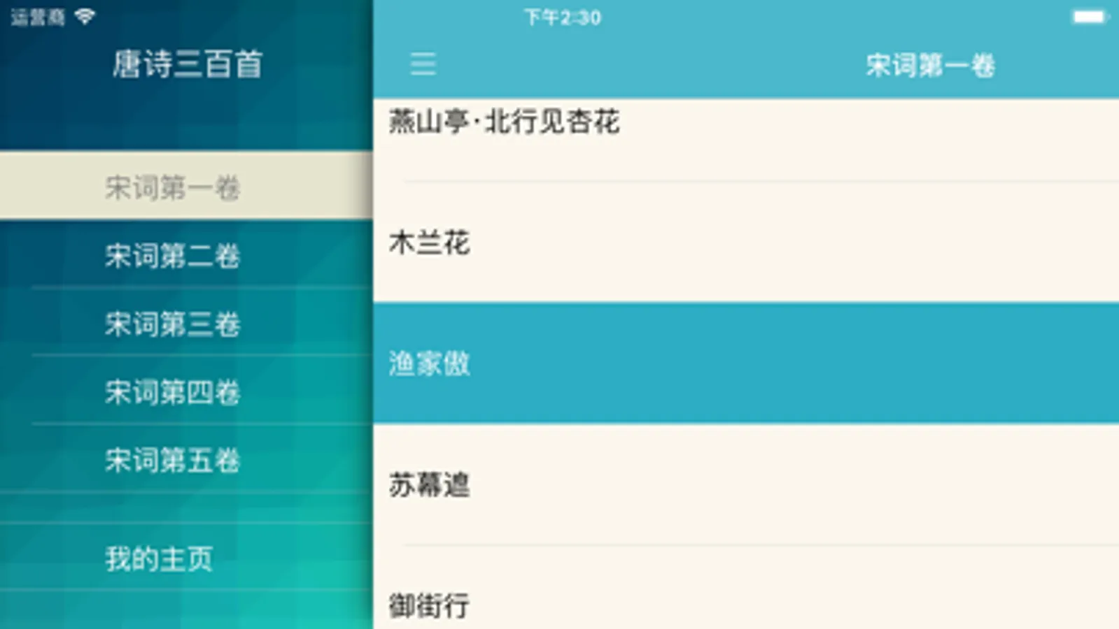 宋词三百首有声电子书应用包含300首宋词。每首宋词不仅有注解,有详细的赏析,而且也有语音朗读,是学习宋词,研究宋词,欣赏玩味宋词的一个更好帮手。