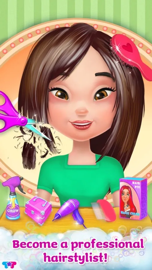 Give your clients the craziest hairstyles ever! Enjoy tons of professional tools like curling irons, blow dryers, scissors, magic hair growing spray and so much more! You can even color your clients’ hair in a variety of crazy cool colors. Long or short?! Curly or straight?! Aqua or Pink?! It’s all up to you!