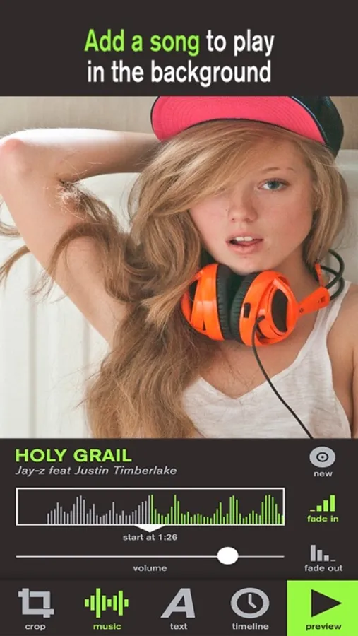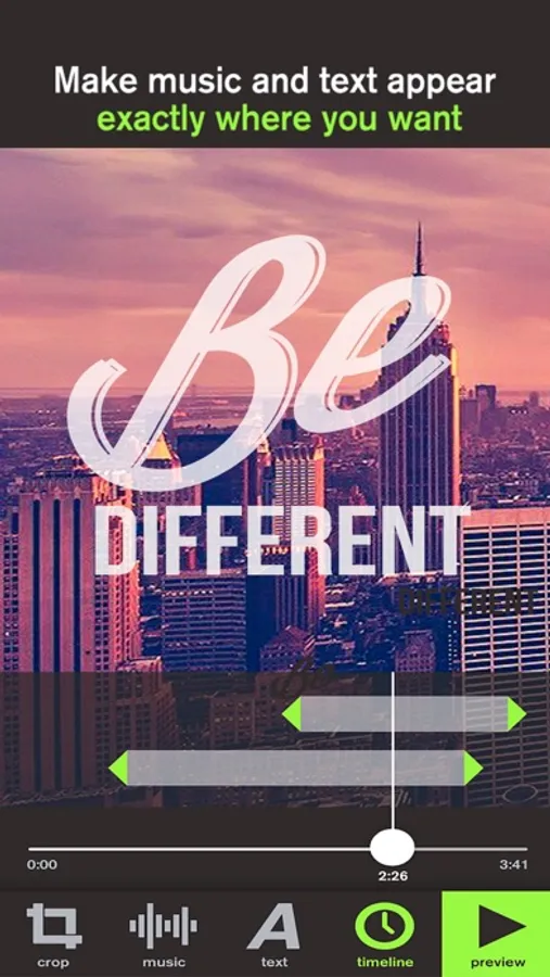 Choose exactly where you want your text, music and graphics to appear using the timeline feature.