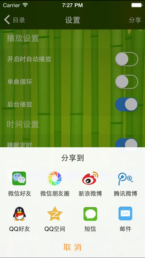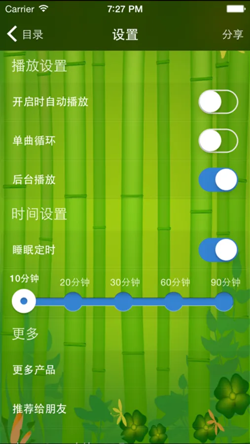 4.睡眠定时:设定自动关闭播放时间,时长从5分钟到3小时,到时自动关闭播放。