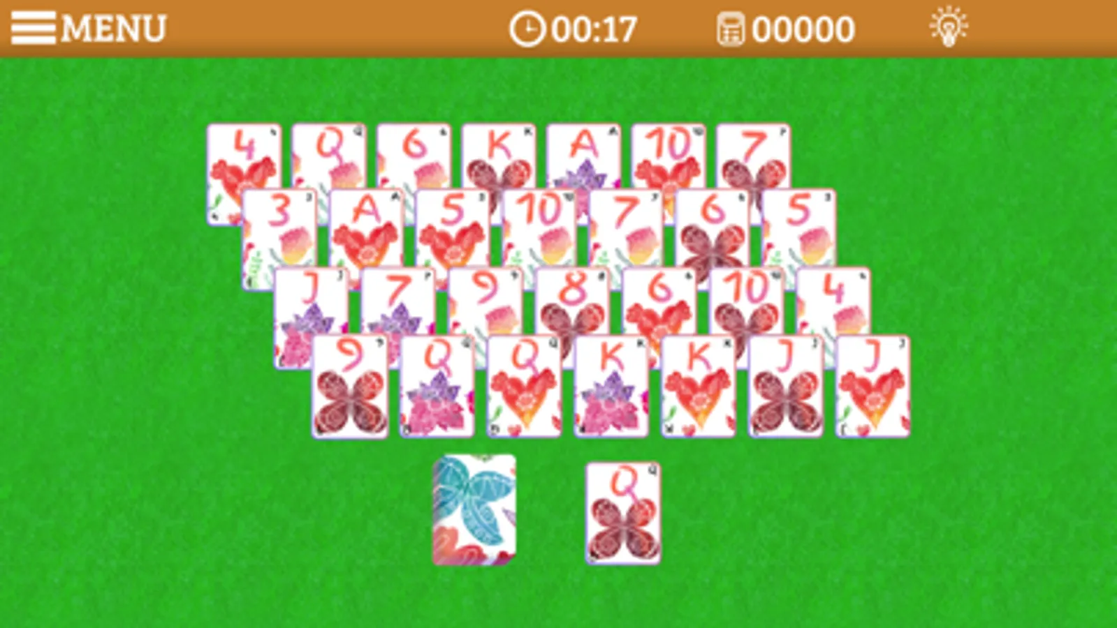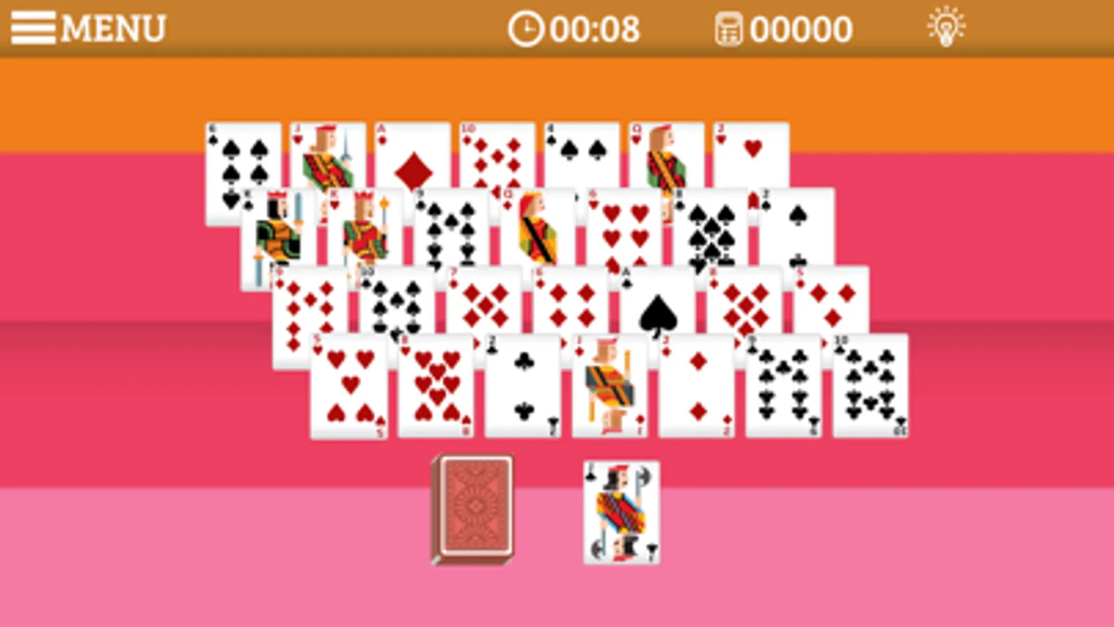 This is a Golf Solitaire game with many layouts and multiple card sets. There are 20 different tableau layouts included, including the standard golf layout that everyone loves. The game also offers multiple card-sets to choose from, from classic to modern, and colorful ones. You can toggle difficulty levels via Random or non Random option and turn on/off rules (allow/disallow Queens on Kings and wrapping Aces) so that you can play based on what you like. Easy interface, colorful graphics, and various sound-effects makes playing the game fun and challenging.