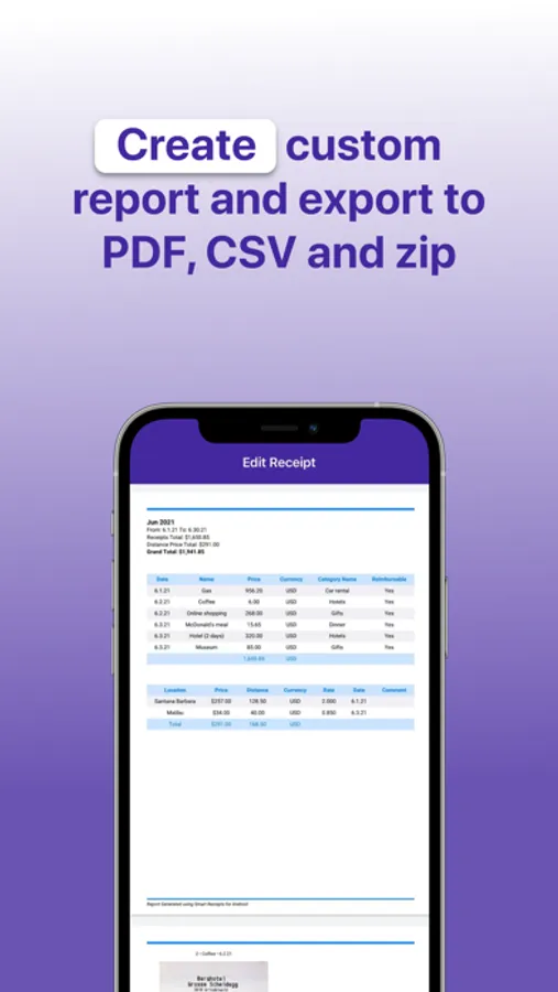 With fully customizable PDF, CSV, and ZIP reports, you can create professional reports for both your personal finance tracking and your employer’s needs. Smart Receipts allows you to select from over 20 different default data types (including dates, price, tax, receipt categories, comments, payment methods, etc.) to help you generate the perfect report, saving you hours of time doing expenses and getting you back to things you actually care about.