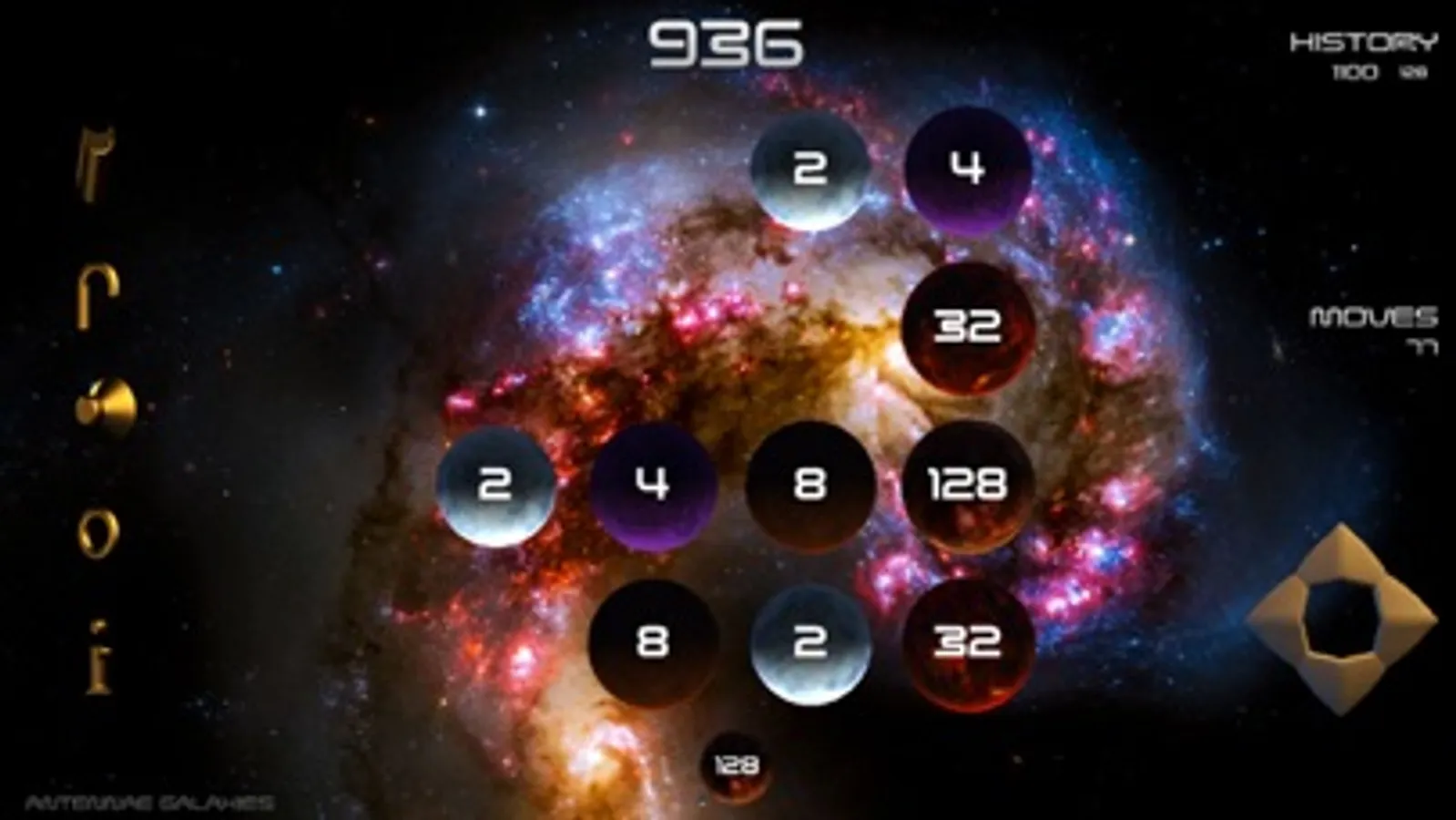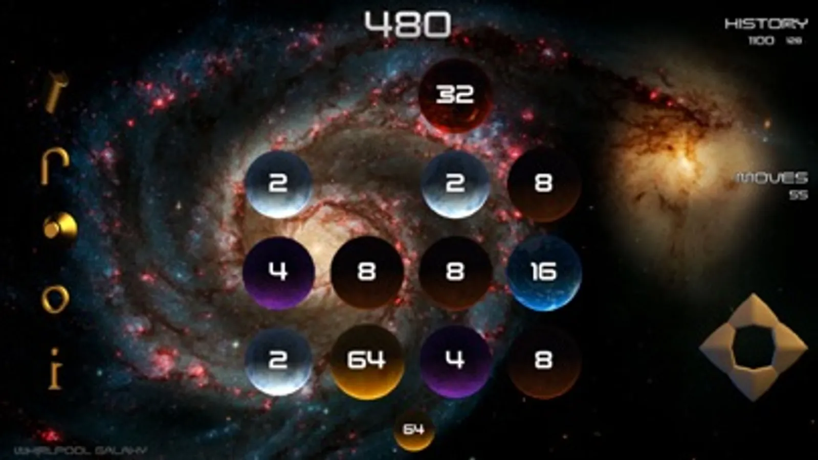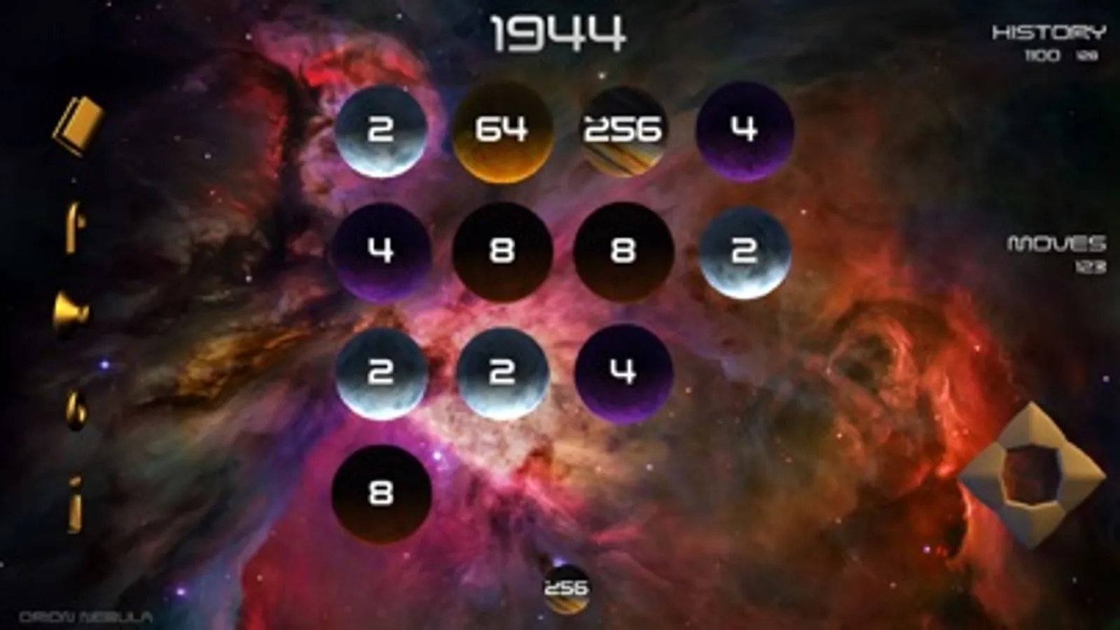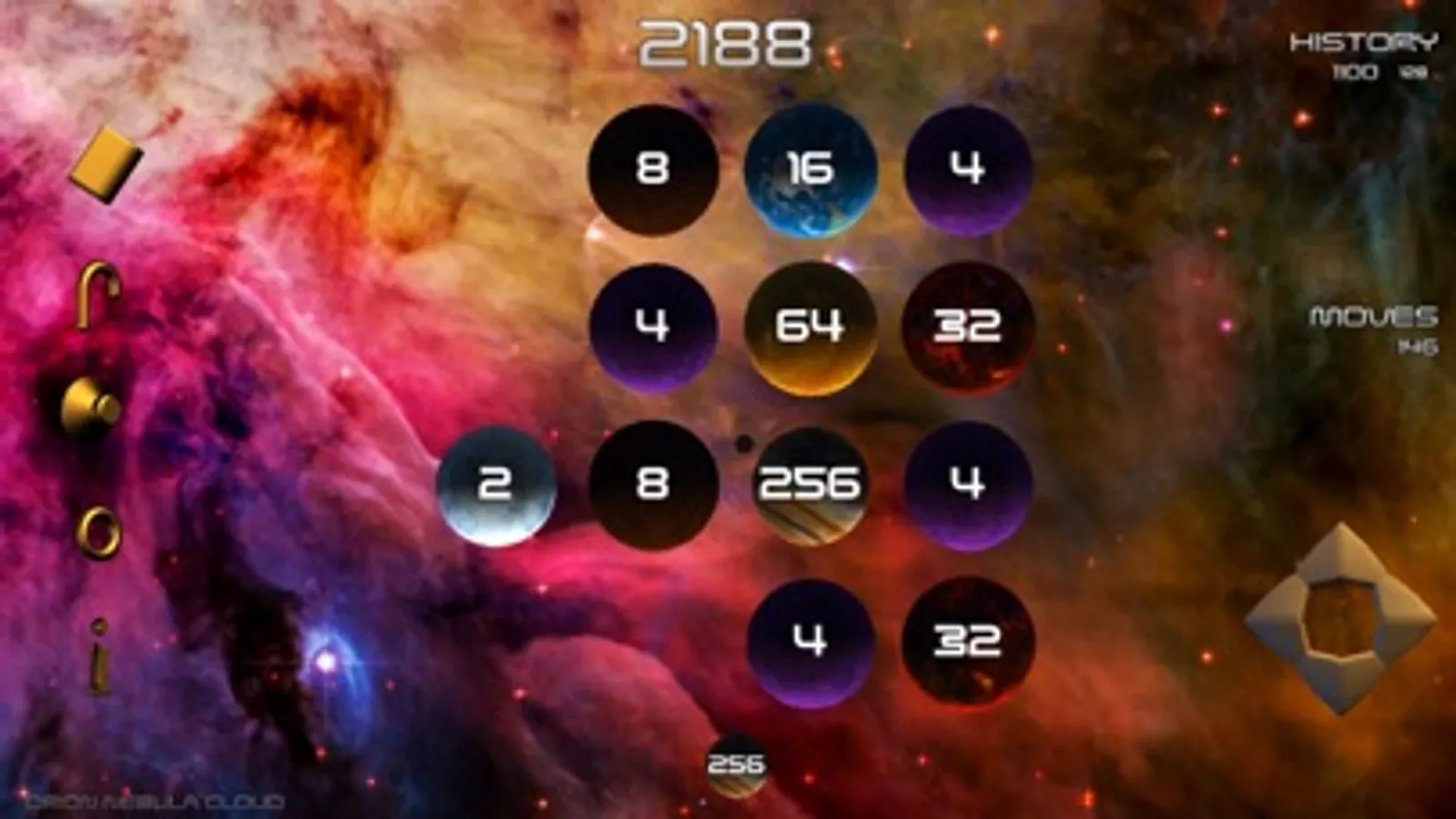 Space 2048 takes place in outer space with grandiose visuals of the entire universe as background. Here you are surrounded by galaxies, suns and asteroids and move entire planets to get to your score. For an engulfing game experience Space 2048 includes a soundtrack and great sound effects. You can quit the game at any time and continue exactly where you left off later. There is an undo for any mistakes you might make and you always have a history of your last 8 scores available.