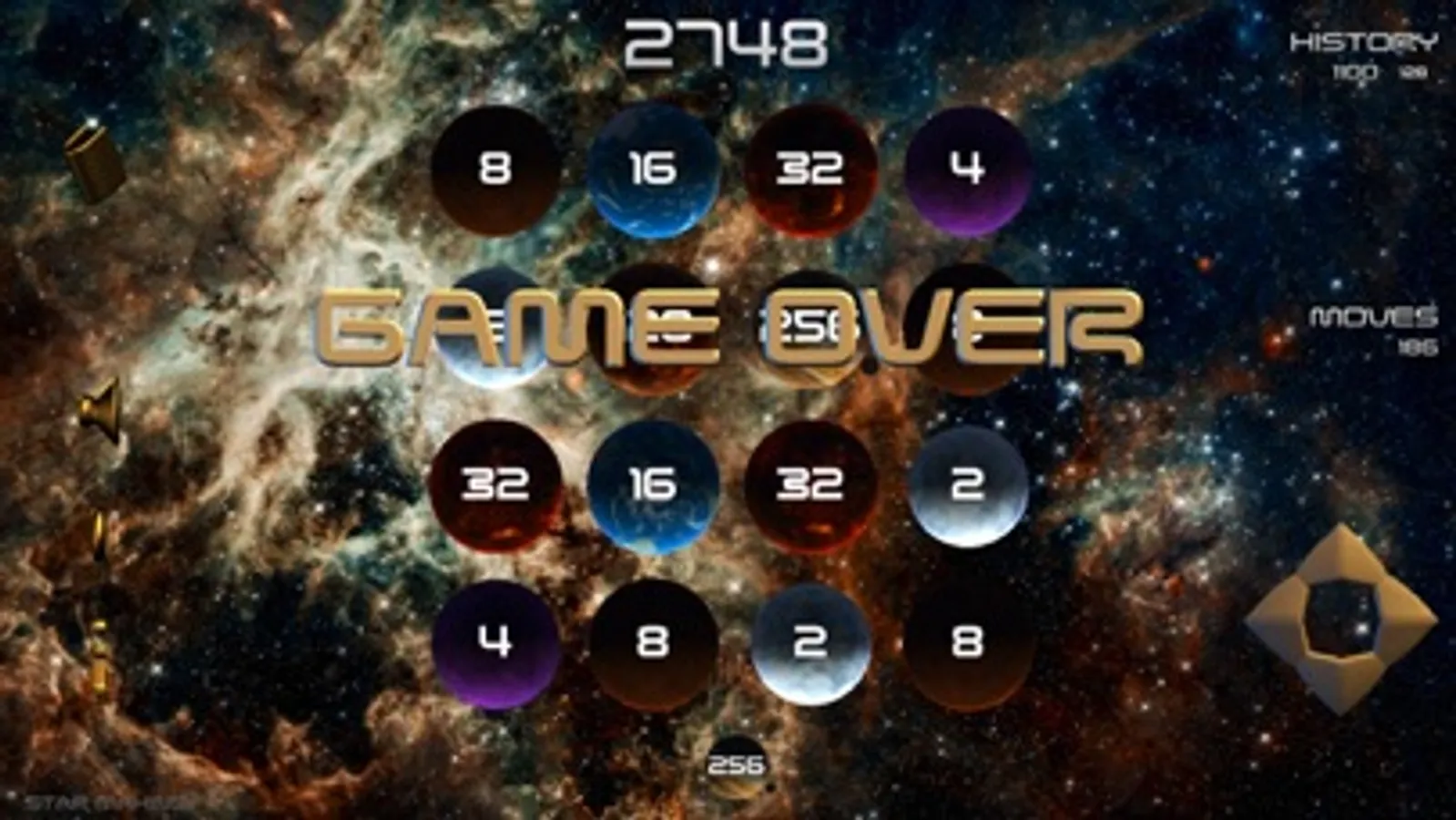 The rules for the Space 2048 game are very simple. There are only four game moves. Use the arrow buttons or swipe on the screen to move to the left, the right, the top or the bottom. All planets will then move into that direction as far as they can. Planets of the same kind will merge into a new planet with their combined value and your score is updated. You win once you have one planet with the value of 2048. And that is much easier said then done.