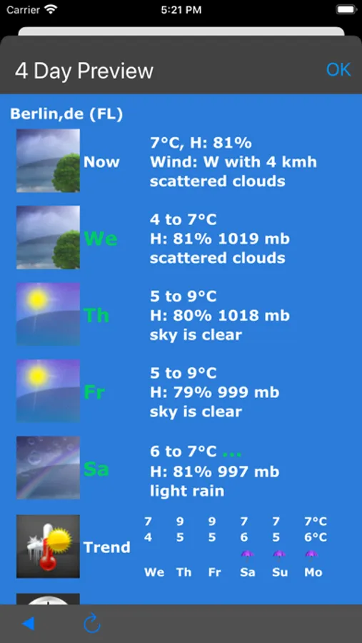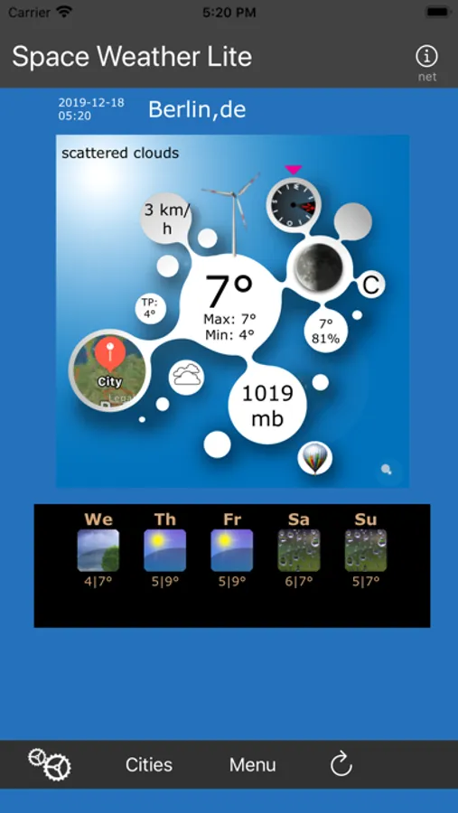Use your iPhone, iPod Touch or iPad as real Weather station. Big Temperature display, windchill temperature, humidity, wind speed, wind direction, barometer, moonphases and more values can hardly be desired. With this design-weather you can have fun with the weather. A 4-days weather forecast and more is built-in.