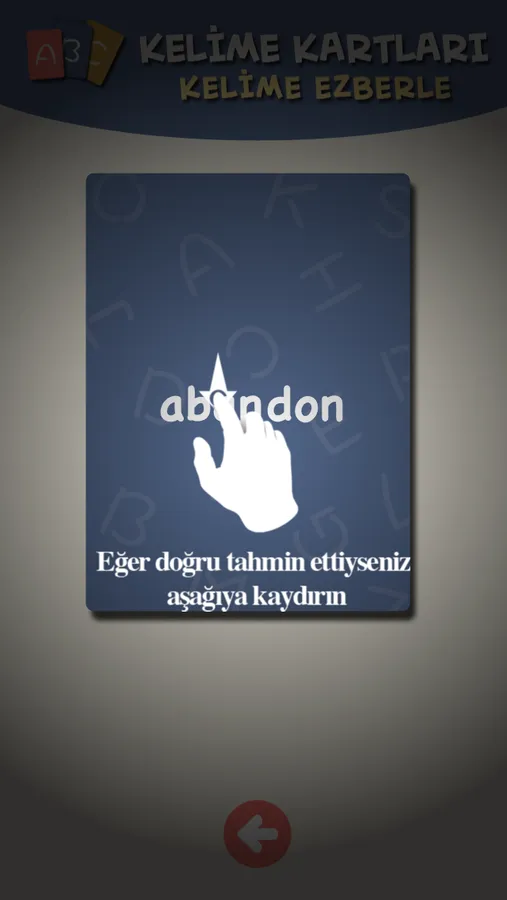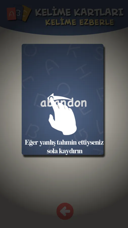 Eğer kelimeyi yanlış tahmin ettiyseniz; kelime kartını sola doğru sürükleyin.