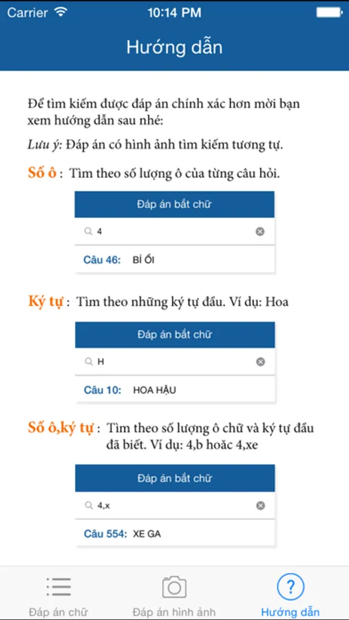 Bắt chữ đang là trò chơi phổ biến và được quan tâm nhiều nhất hiện nay. Ứng dụng đáp án sẽ giúp bạn giải đáp những câu hỏi hại não mà bạn vắt óc suy nghĩ cả ngày cũng chưa tìm được đáp án. Với tính năng tìm kiếm dễ dàng và thú vị.