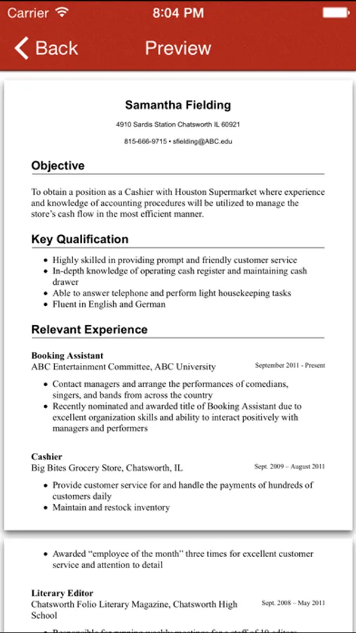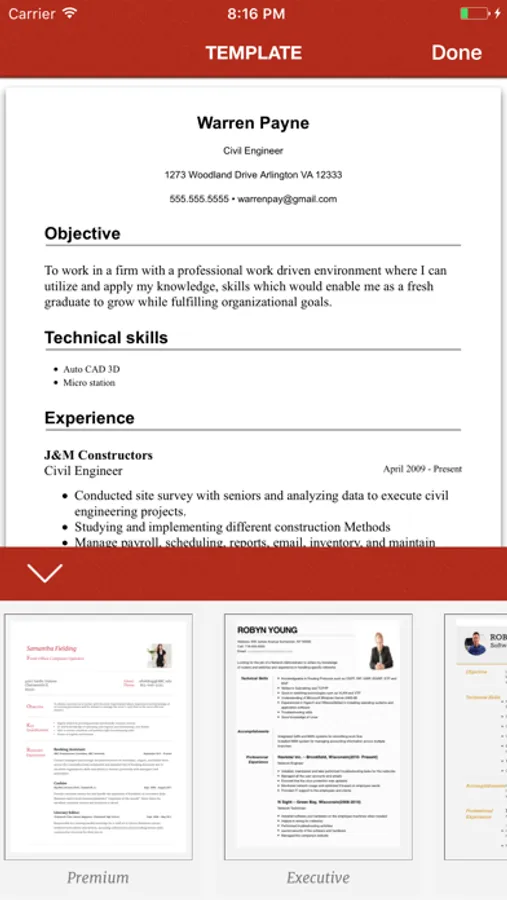 - Auto chronological order (Just fill in the blanks and that's it. ) Resume Maker will do the rest for you.