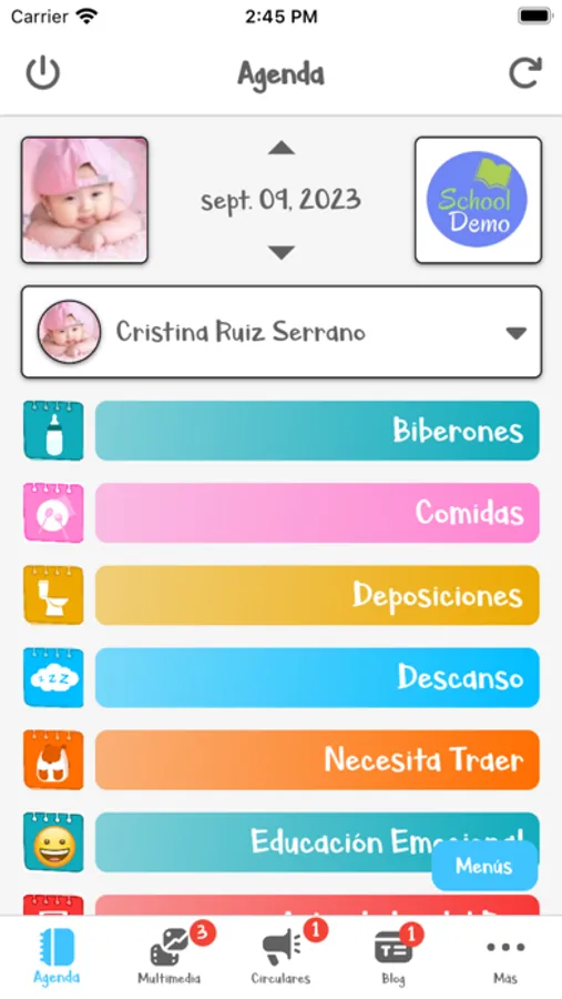 Con MIA los papis recibirán fotos, consultarán en cualquier momento los menús del centro y tendrán acceso inmediato y a mano a los tablones de anuncios.
