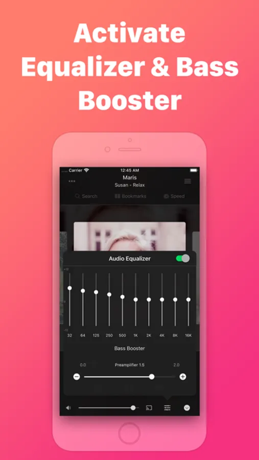 Audio equalizer. This app has built in equalizer with different presets for the most popular music genres. But you can also select manual equalizer settings and change preamplifier gain if you need to make your music louder.