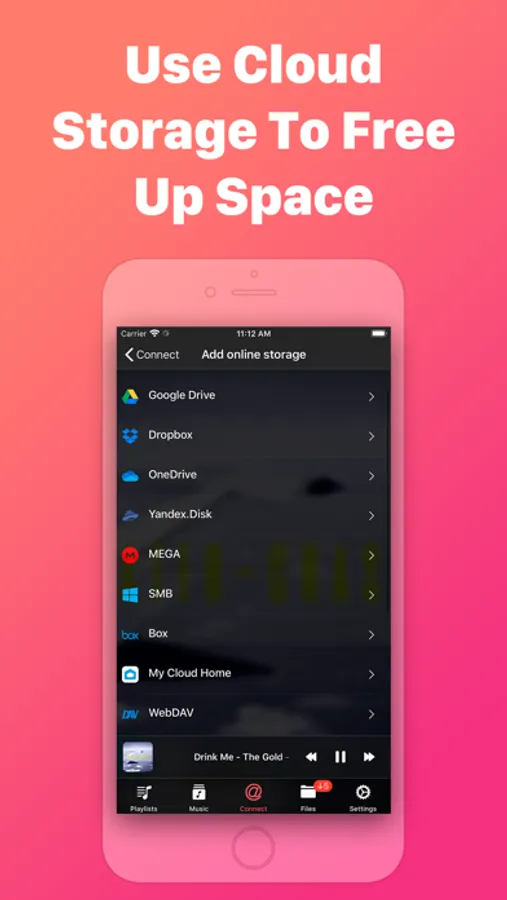 The most popular audio formats are supported: MP3, AAC, M4A, WAV, AIFF, M4R. With this app you can create your own music streaming service. Just move your music library to the cloud service and listen to your music directly from there. All your music now available online and you can free up space on your iPhone for photos and new apps. The most popular cloud services are supported: Google Drive, Dropbox, OneDrive, Box, MEGA, 百度网盘, InfiniCLOUD, Yandex.Disk, WD MyCloud Home, Put.io, MediaFire, MyDrive, pCloud, HiDrive.