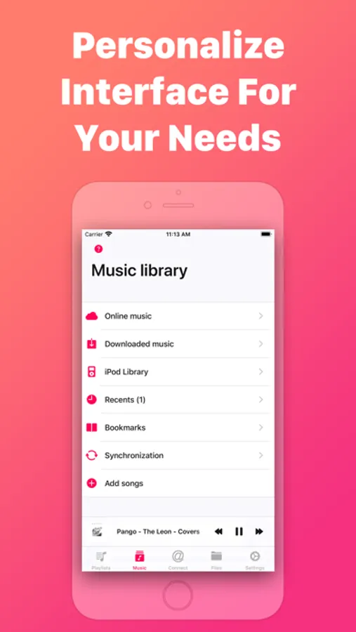 Automatic synchronization. Your music library automatically synchronized between cloud service and device. All songs are grouped by artist, album, genre.