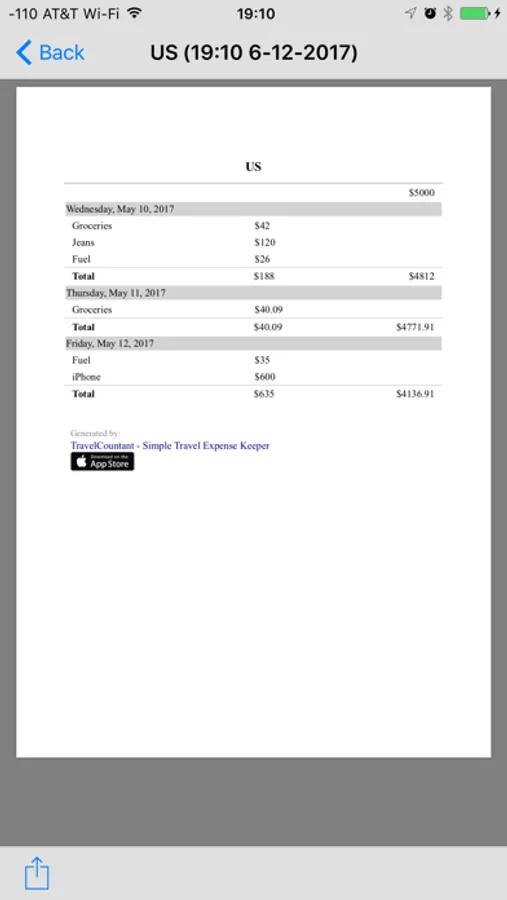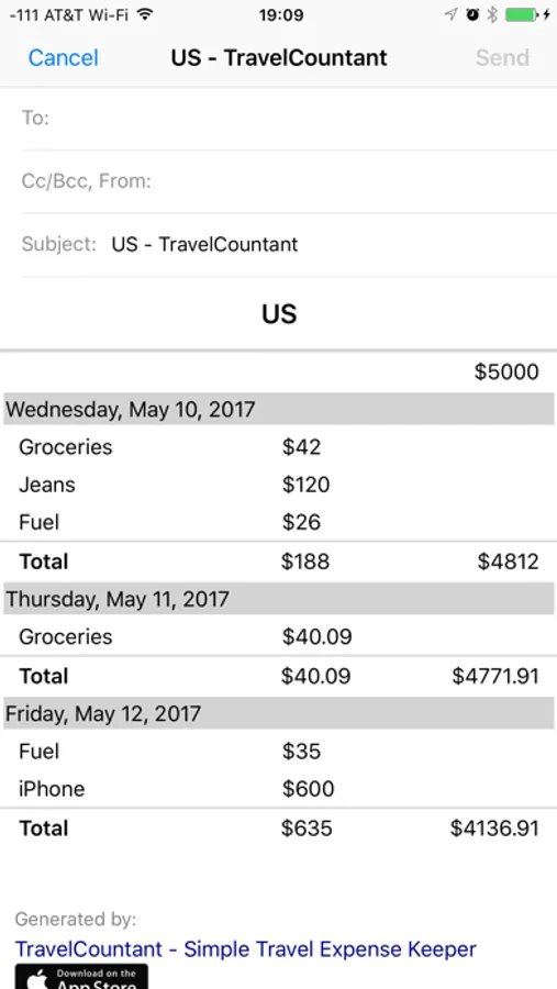 Finally, once your trip is over, or your project is complete, you can generate an email with your expenses and send it to your accountant or to yourself to keep it in record.