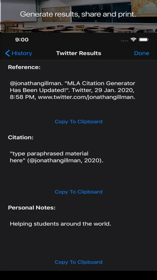 Once generated, your citation is ready to be copied and pasted directly into your paper or bibliography, eliminating any room for error in the citation process.