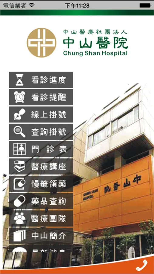 安裝中山醫院APP「行動資訊服務系統」,讓您隨時隨地一手掌握就診資訊,包括看診進度、看診提醒、行動掛號、門診表、醫療講座、藥品查詢、預約慢籤領藥、最新消息、醫療團隊介紹、交通資訊等服務,歡迎民眾踴躍下載使用。我們也將不定期提供系統功能升級與更新版本。