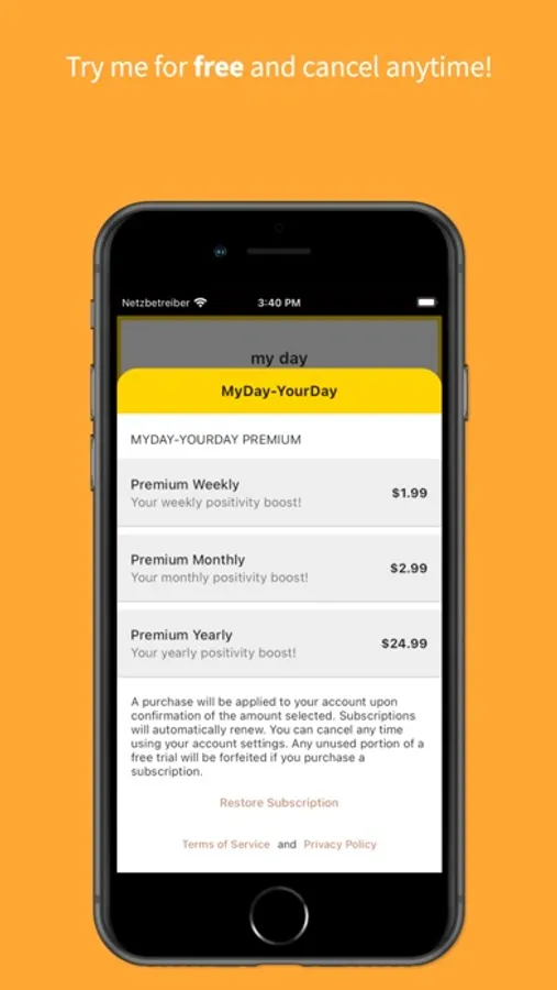 "My day your day" is an affirmation-app for the daily reminder what's really important in life. It helps you through your everyday life with a lot of positive energy.