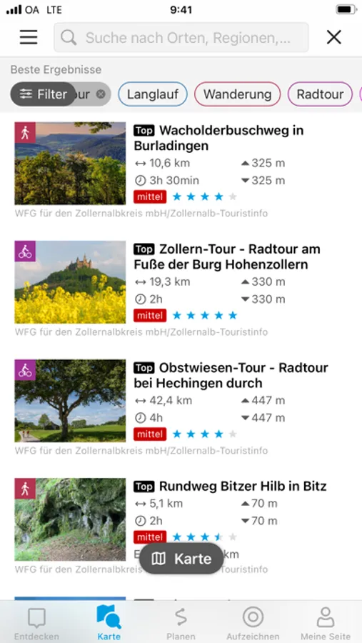 Unsere Touren verfügen alle über ausführliche Informationen, wie: