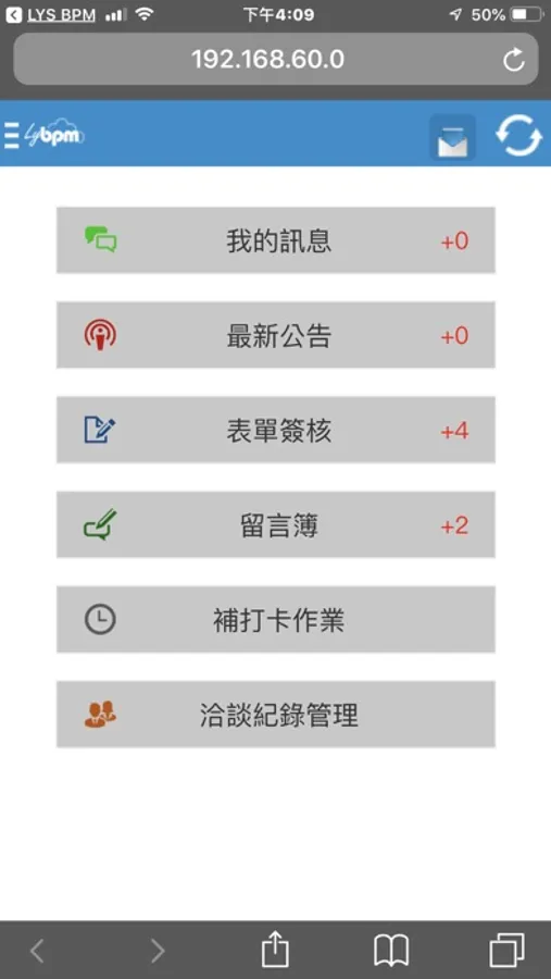 3.用戶在收到訊息通知時,可以快速的登入至BPM系統去查看訊息。