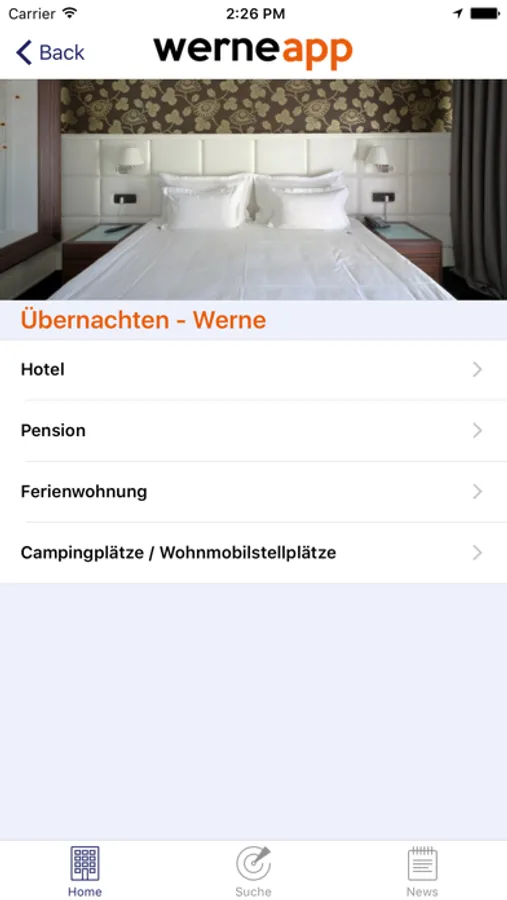Unterkunft: Hotels, Ferienwohnung, Appartements, Wohnmobilstellplätze etc.