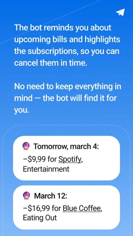 With Zenmoney, you can see where your money is going. Spending statistics offer insight on how much you need for regular bills, and how much you can spend on coffee, books, movies and travel. Payment forecasts spotlight unnecessary or costly subscriptions and remind you about important recurring payments. Together, these features can help you to set your financial priorities and avoid expenses that are no longer needed.