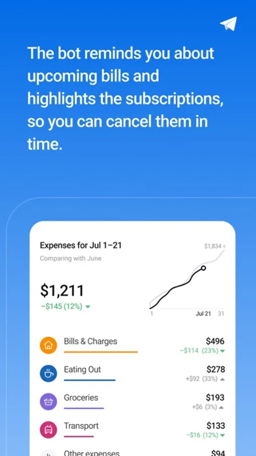— send regular updates regarding your financial status, such as comparing expenses from this month and last month